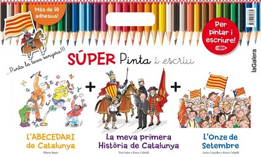 Els tres contes sobre el nostre país, il·lustrats per Roser Calafell i Pilarín Bayés, per PINTAR i ESCRIURE. Amb adhesius i senyeres per pintar i retallar! Amb "l'Abecedari de Catalunya", aprendreu les principals paraules que defineixen el nostre país. "L'Onze de Setembre" descriu amb humor la diada nacional de Catalunya. I "La meva primera història de Catalunya", de Toni Soler, és el primer conte sobre el nostre país, perquè els més petits de la casa comencin a conèixer la terra on viuen.