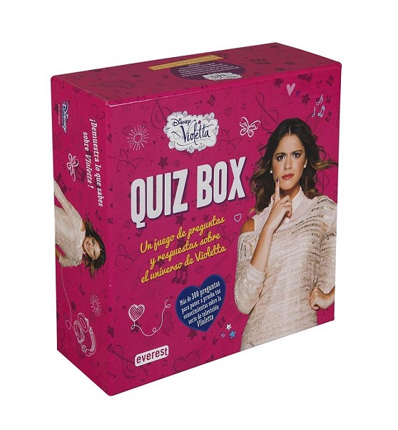 ¿Conoces el mundo de Violetta? ¿Eres una de sus fans? ¿Has tenido la suerte de bailar en sus alucinantes conciertos? ¿Sabes cómo visten y cómo se llaman otros personajes de la serie? Si es así, en esta caja hexagonal, encontrarás más de 350 preguntas sobre los protagonistas de la serie de TV y los episodios que has visto y podrás desafiar a tus amigos. ¡A ver quién acierta más y gana! ¡Demúestrales lo mucho que sabes de Violetta!