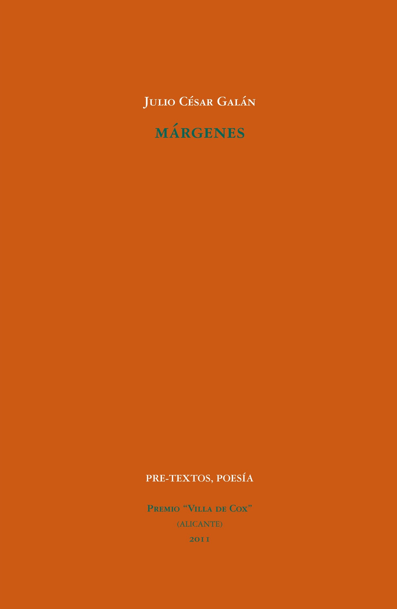Julio César Galán (Cáceres, 1978). Actualmente es lector en la Universidad de Argel. Director de las revistas de teatro y poesía, Dioniso y El juego de los putrefactos, respectivamente. Autor de los siguientes poemarios: El ocaso de la aurora (Madrid, 2004) y Tres veces luz (Barcelona, 2007), además, ha publicado, como heterónimo: Gajo de sol (Cáceres, 2009), de Luis Yarza, ¿Baile de cerezas o polen germinando? (Tenerife, 2010), de Pablo Gaudet, y este año verá la calle Jimena Alba con Reptilia. Algunos de sus artículos y poemas se encuentran en revistas como Cuadernos hispanoamericanos, Turia, Alga, Cosmópolis, Primer Acto o Cuadernos del Matemático. Entre sus textos teatrales cabe destacar: La edad del Paraíso, Eureka o Con permiso del olvido.