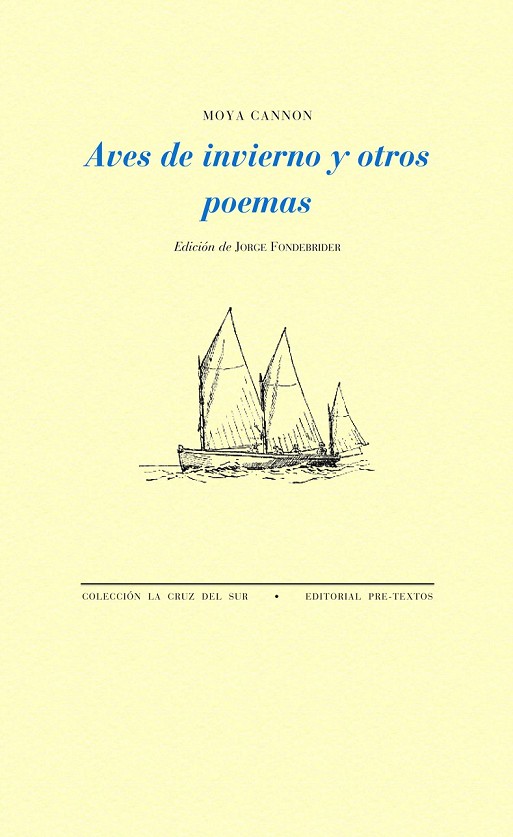Moya Cannon (Dunfanaghy, Condado de Donegal, Irlanda, 1956) ha publicado Oar (1990 y 2000), The Parchment Boat (1997), Carrying the Songs: New and Selected Poems (2007) y Hands (2011). Esos pocos libros le han bastado para convertirla en una de las más notables voces de la poesía irlandesa actual y, a la vez, dejar testimonio de un paisaje agreste claramente definido, un cielo debidamente constelado, el folklore y la historia, primero de su región y luego de su país.