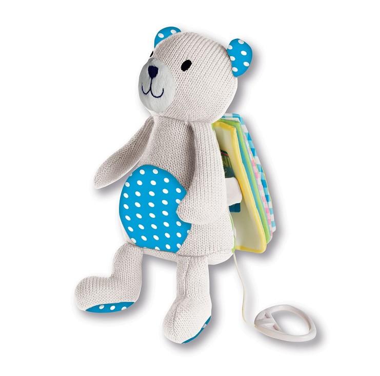 Un libro de punto musical que alegrará a los más pequeños. Muñeco de punto y tela Libro de tela de ocho páginas Tirador para accionar la nana musical