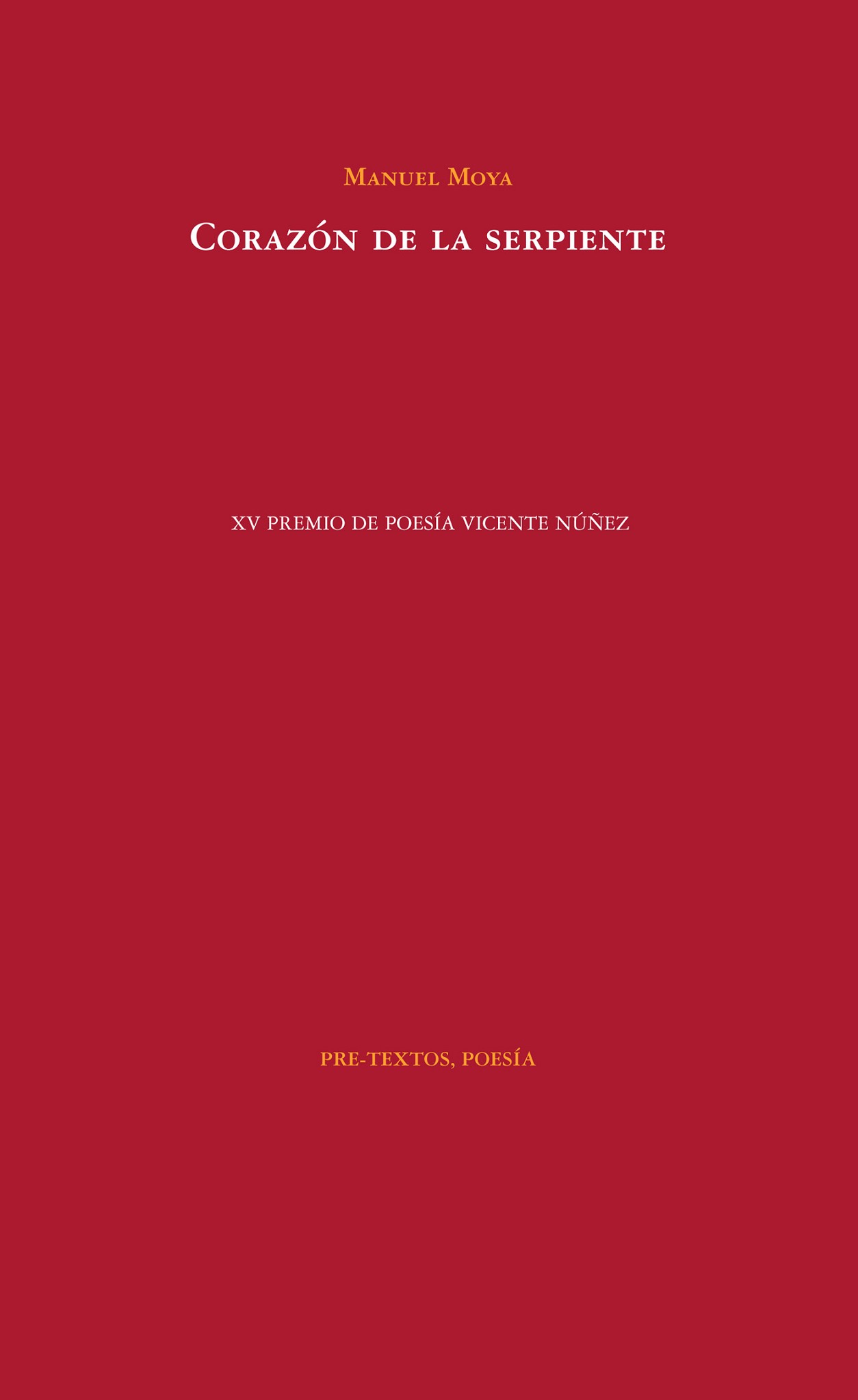 Manuel Moya (Fuenteheridos, 1960). Como poeta ha publicado una quincena de libros, entre ellos: Interior con islas (Pre-Textos, 2006), Impedimenta (Renacimiento, 2011), Apuntes del natural (Col. Vandalia, 2014) o A salvo (Col. Provincia, 2016). Ha traducido gran parte de la obra literaria de Pessoa, como sus Cuentos (Páginas de Espuma, 2016), la obra de Campos y de Reis (Visor, 2014, 2015) o Libro del desasosiego y Ficciones del interludio (Alianza, 2016). Como narrador es autor de cuatro novelas, la última de ellas, Cenizas de abril (Alianza; 2011), y tres libros de cuentos, con uno de ellos, Caza mayor (2014), obtuvo el