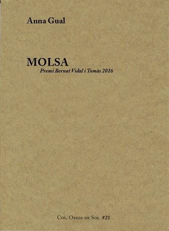 Molsa és un tractat que versa sobre les meravelles diminutes que viuen amagades en l’invisible. El llibre posa en valor la molsa, un organisme imprescindible en el marc de la natura, i ho fa a través de tres parts, que es corresponen als atributs primordials d’aquesta forma de vida: mansió per a petits invertebrats, contra la degradació i cèl·lula molla de Déu. Il·lustracions d’Ana Cabello i epíleg de Gemma Gorga.