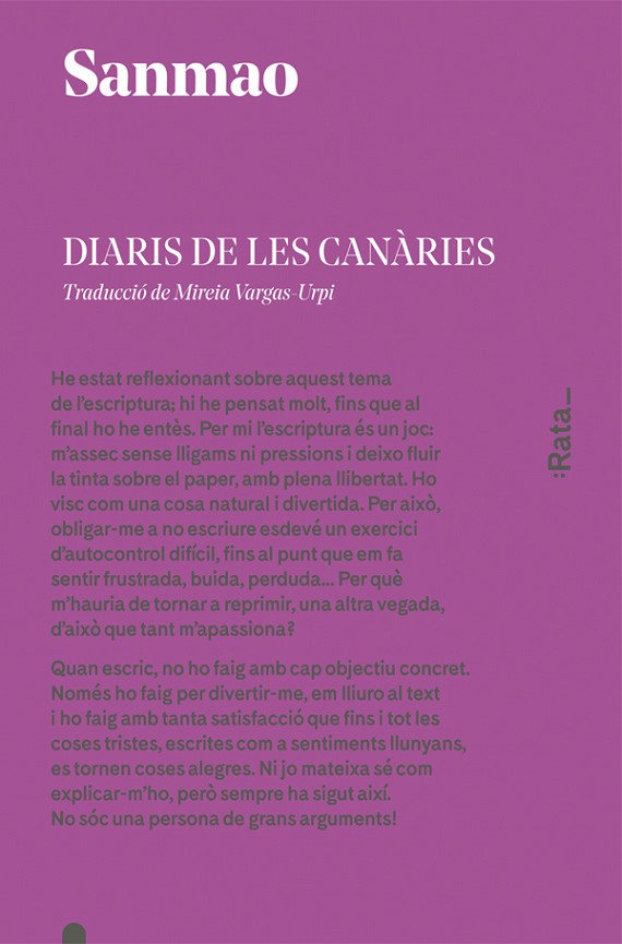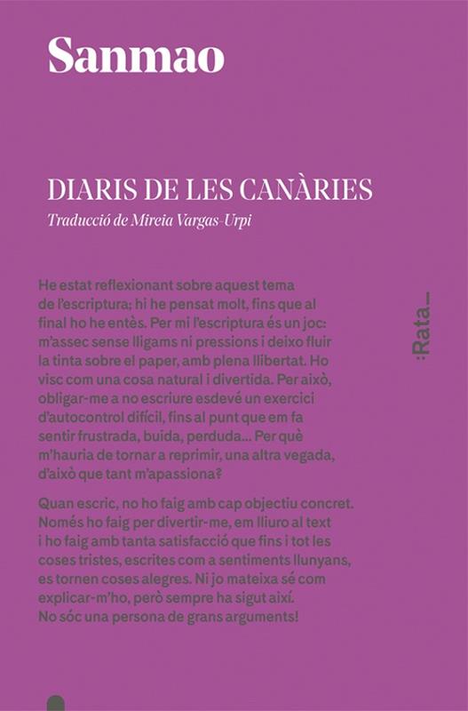 Sanmao és camí, és recerca i és vida, però sobretot és llibertat. Chenping, Echo, Sanmao: tres noms, tres nacionalitats que il·lustren la naturalesa errant de l'autora, de qui va fer del camí i dels qui el transiten la seva llar. Sanmao, caminant infatigable, fa bona la dita que la vàlua i la quantitat del tresor són sempre ínfimes si se les compara amb l'aventura que les va precedir; per gran que sigui el botí, sempre significa el mateix: l'arribada a un final, a un punt de no retorn, al nostre destí. Sanmao va fer del camí i la seva vida la més gran de les obres. La veu de Sanmao està destinada a ser universal pel que hi ha de particular en ella. Diaris de les Canàries, recull els anys que l'autora i el seu marit, José Quero, van viure a les illes i on la seva vida va tenir el seu gir més dramàtic. <br><br>Després del descobriment de Diaris del Sàhara, :Rata_ torna a portar al nostre país a una de les veus més enigmàtiques i captivadores del continent asiàtic. Per mèrits propis, Sanmao hauria de ser considerada un clàssic del segle XX.<br><br>