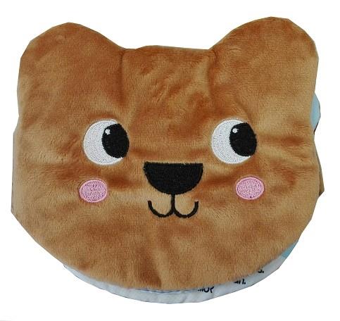 Dos llibres de roba amb forma de cara d'animal: gatet i osset. Llibres amb cobertes molt suaus per estimular el tacte del nadó i amb un sonall interior, perquè quan el nadó mogui el llibre, faci soroll. Tots dos llibres estan il·lustrats amb colors forts i vius.