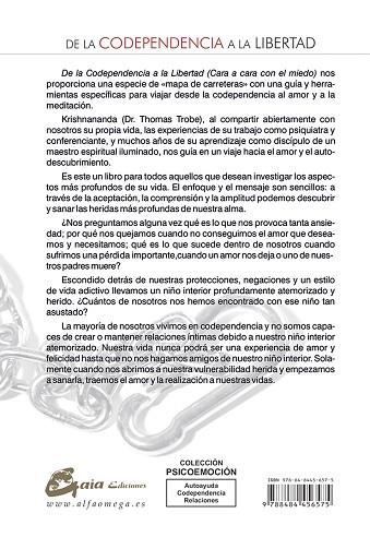 De la Codependencia a la Libertad (Cara a cara con el miedo) nos proporciona una especie de «mapa de carreteras» con una guía y herramientas específicas para viajar desde la codependencia al amor y a la meditación.