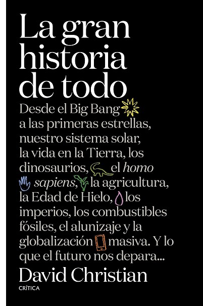 David Christian, el creador de la «big history», de la «gran historia» que enlaza la evolución del cosmos, de la vida y de la humanidad para ofrecernos una perspectiva distinta de los grandes problemas del Antropoceno, culmina su obra con este libro realmente único, que discurre desde el big bang, el sistema solar, la aparición de la vida, los dinosaurios, el homo sapiens y los grandes imperios hasta la globalización. Un libro que ha despertado el entusiasmo de lectores como Bill Gates o el físico Carlo Rovelli quien considera esta disciplina «un método espectacular para, a través de la historia, poner orden en todos nuestros conocimientos sobre el mundo».