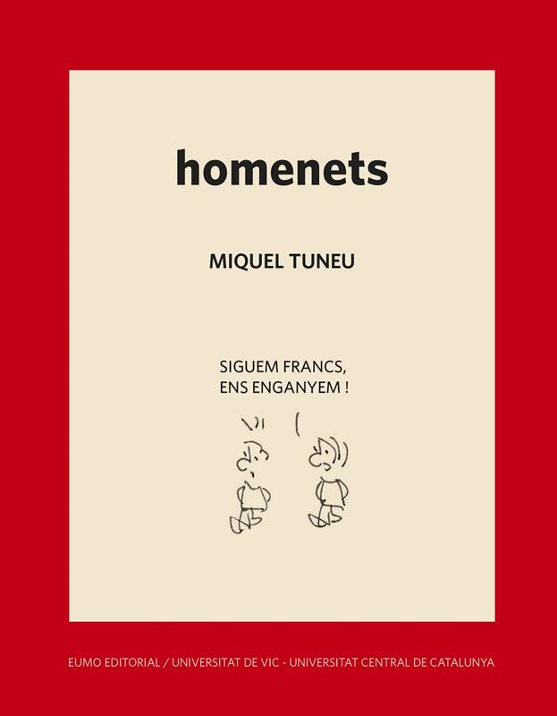 «Sovint la realitat se'm presenta en forma d'acudits... no sempre bons» diu l'autor d'aquestes tires còmiques, que ens faran riure mentre ens remouen per dins. Els «homenets», començant pel nom, posen l'accent en la petitesa de la nostra condició i de les nostres vides, un fet que ens esforcem a ocultar. Tots participem del mateix joc ?que ens prenem molt seriosament? de mostrar una imatge socialment acceptable que ens permeti fer-nos un lloc al món. Aquest és el joc de l'absurd que els homenets i les donetes de Miquel Tuneu posen en relleu amb humor i sensibilitat.