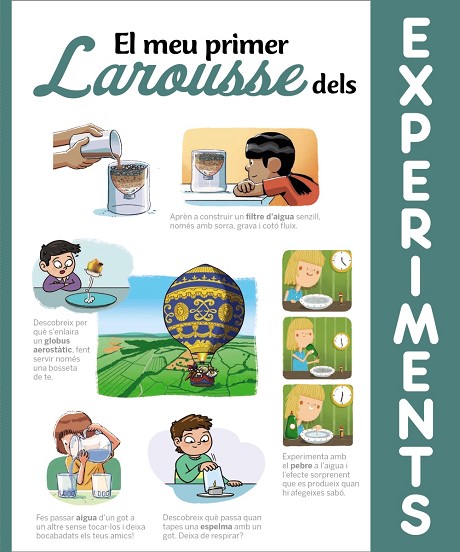 «El Meu primer Larousse dels Experiments» permet aprendre ciència d'una altra manera. Cada experiment està relacionat amb algun principi de la física o la química, com l'aerodinàmica, la descomposició de la llum en l'espectre cromàtic, la fotosíntesi de les plantes, els estats de l'aigua o la manera de submergir-se de peixos i submarins.