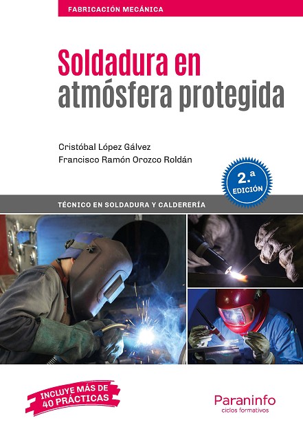 La soldadura en atmósfera protegida;(MIG-MAG y TIG);es la más utilizada en la fabricación;de productos metálicos;además de por su rendimiento;y calidad, por su fácil automatización.;Este libro desarrolla los contenidos del módulo de Soldadura en Atmósfera Protegida del Ciclo Formativo de grado medio de Soldadura y Calderería, perteneciente a la familia profesional de Fabricación Mecánica.;En esta segunda edición, a partir de la experiencia y sugerencias de profesores que imparten la materia, se han ampliado los contenidos y se ha aumentado la información gráfica. También se han propuesto un nuevo orden y tipo de prácticas.;La soldadura con máquinas semiautomáticas (MIG-MAG) ha revolucionado la producción en las empresas por su gran tasa de deposición y por la calidad de las uniones. Además, tiene a su favor su facilidad de automatización, que puede ser desde un simple carro de desplazamiento hasta su colocación en un brazo robot. Esto hace que sea uno de los procedimientos más utilizados en la actualidad.;La soldadura TIG es una de las soldaduras más limpias y seguras que existen. Con ella se suelen hacer las soldaduras más difíciles y en los materiales más complicados, así como cordones de raíz para asegurar una penetración buena y fiable. Actualmente, ha sustituido casi por completo al soplete.;Un buen profesional de la soldadura tiene que conocer estos dos procedimientos.;El libro está formado por dos partes diferenciadas: una con los contenidos conceptuales (teoría) y otra con los contenidos procedimentales (prácticas).;Los autores, Cristóbal López G álvez y Francisco Ramón Orozco Roldán, cuentan con una amplia experiencia en el mundo laboral y de 30 años dedicados a la docencia. Los dos son actualmente funcionarios de carrera y prestan servicio en el IES Politécnico de Sevilla. Además, han publicado otros cinco títulos de formación con esta editorial.