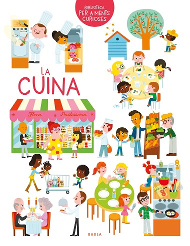Posa't el davantal i descobreix el deliciós món de la cuina i l'alimentació! Mmm...! La fleca fa olor de pa acabat de fer. Com es fabrica la xocolata? Hi ha maneres de cuinar un ou. Al Japó, la broqueta es diu yakitori. Saps esgranar els pèsols? La sal s'obté quan s'evapora l'aigua del mar. Saps com t'has de comportar a taula? L'agricultor sembra i cultiva fruites i verdures. A casa, prepareu creps a vegades?