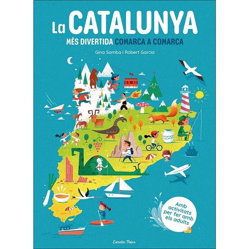 - Un atles de gran format totalment il·lustrat per conèixer Catalunya de la manera més divertida, amb una doble pàgina per a cada comarca.